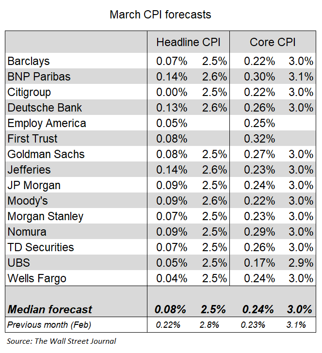 Our attention now turns back to the macro. The focus today will be US CPI, to be released at 8:30am ET. The estimates are in and they seem to be trending lower for Headline CPI.