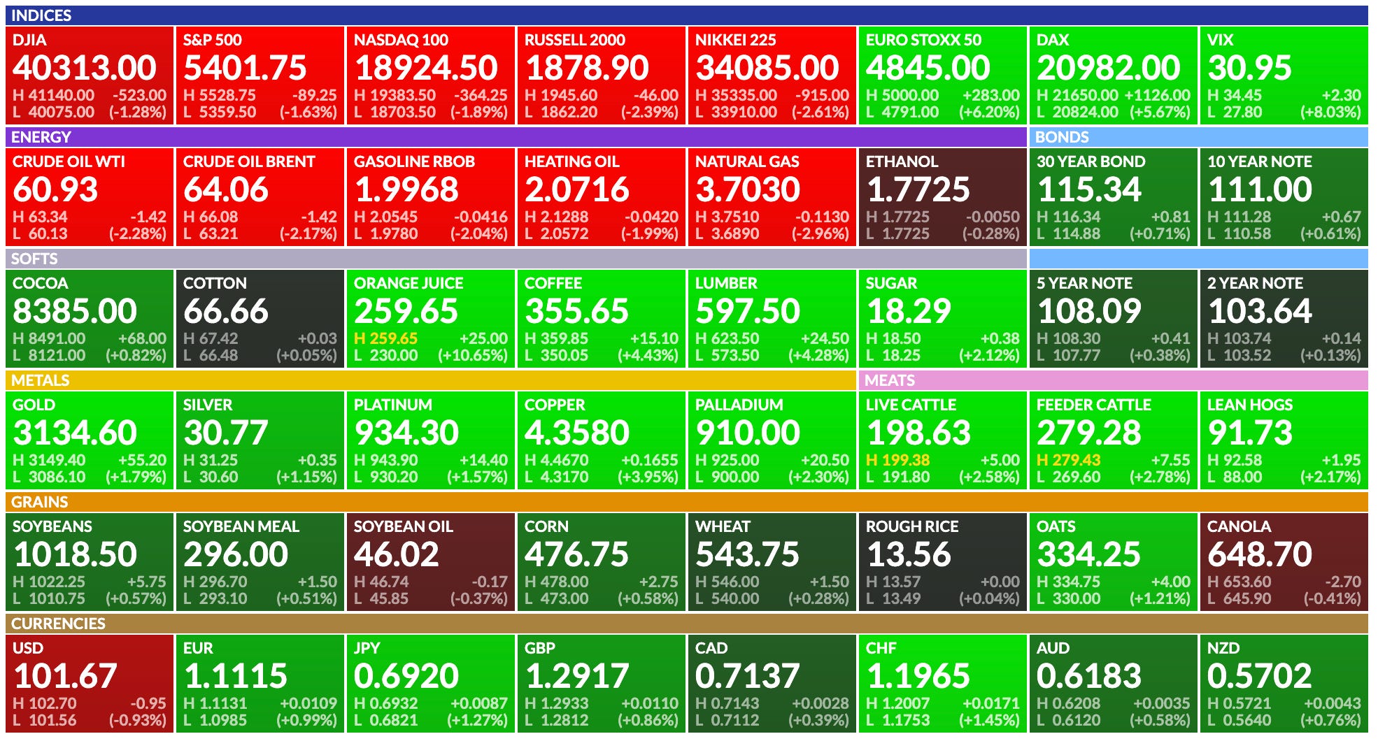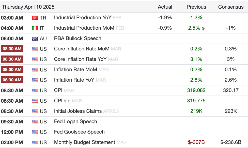 Markets soar on Trump's tariff pause; China gets hit with more; Gold and USD maintain trajectory; US Inflation report at 8:30 am ET