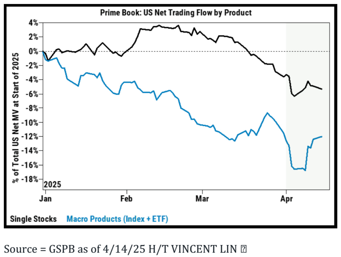 At this stage, we’re not seeing the big buyers step back, neither are we seeing much fund flows, particularly in single stocks. Liquidity continues to remain and thin, and the flight from US assets is quite clear from the drop in the US dollar.