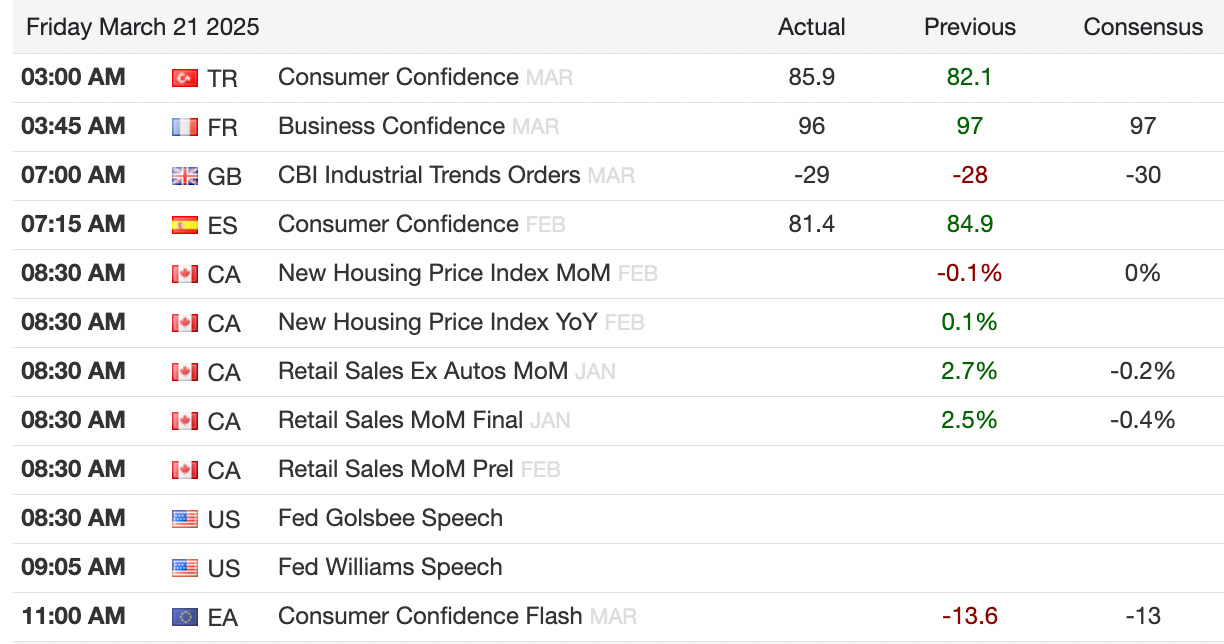 In Asia, Hang Seng Tech fell 3%, with the Hang Seng down 2.1%, coinciding with an 83% y/y surge in Hong Kong court winding-up orders to a 15-year high, while its premium over mainland equities neared its widest since 2020. Foreigners made a sharp shift out of Japanese short-term securities (-¥2.3T) into long-term bonds (+¥3.4T), the second-largest weekly purchase ever, as Japan’s CPI came in slightly above expectations and USD/JPY rebounded to ¥149.40. European markets opened lower amid trade uncertainty, stalled EU countermeasures to US tariffs set for April 2, and geopolitical concerns, with Italy’s FTSE MIB leading declines from a 17-year peak.