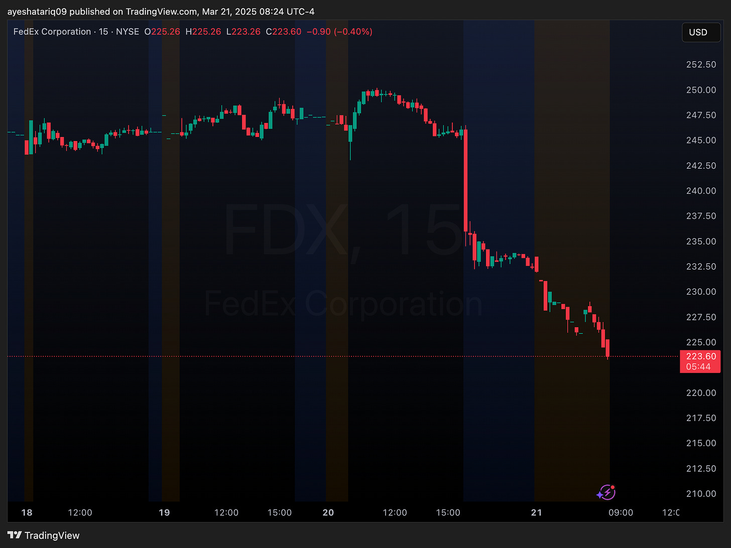 FedEx reported Q3 earnings of $4.51 per share on $22.2B revenue, slightly missing profit expectations but beating revenue forecasts. The company lowered its full-year outlook to $18.00-$18.60 per share, citing U.S. industrial weakness.