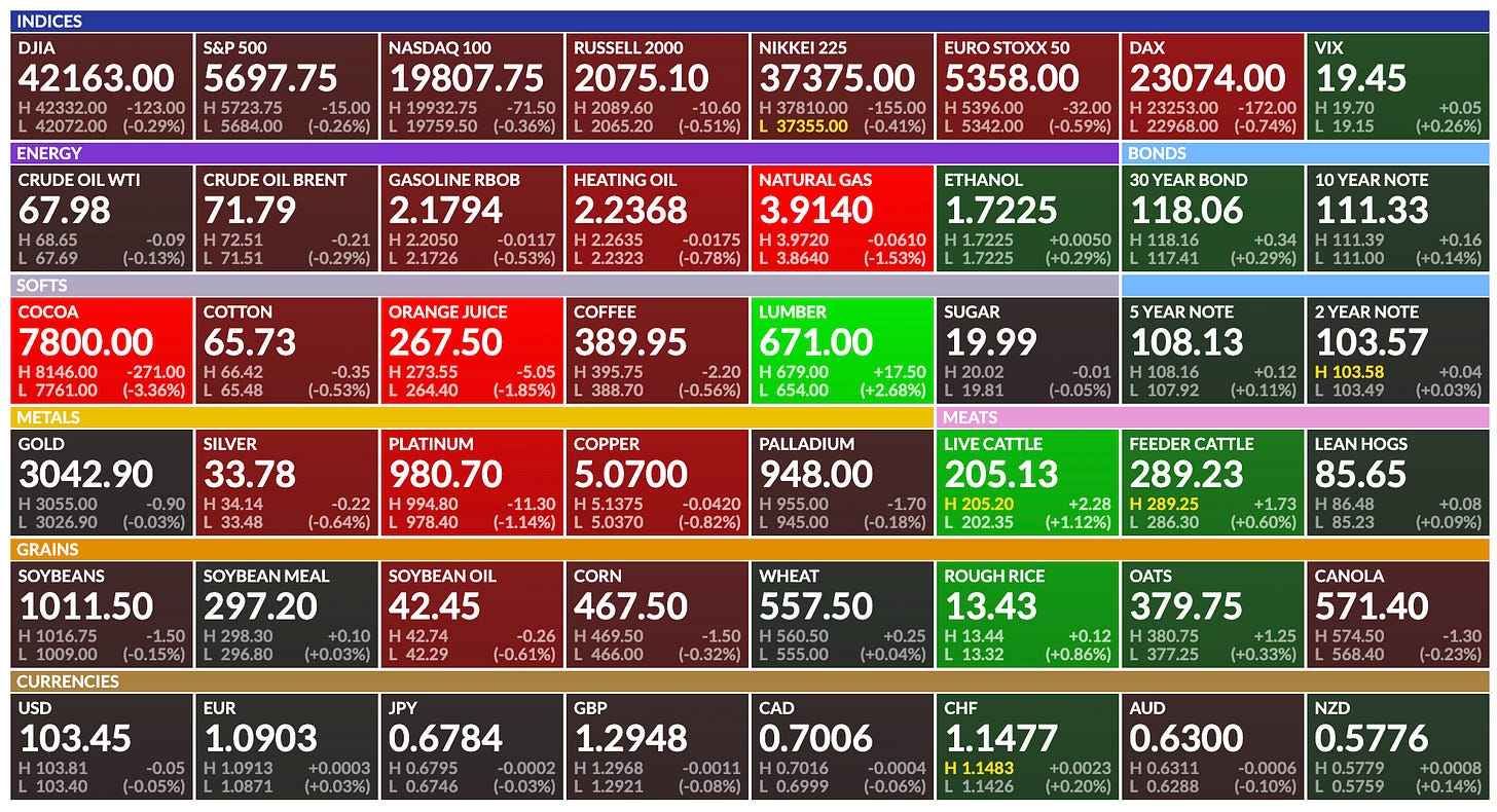 US Equity Futures are lower this morning. Yesterday, earnings after the close failed to impress. FedEx was down -9%, Nike down -7%, Lennar down -4% and Micron down -3%.