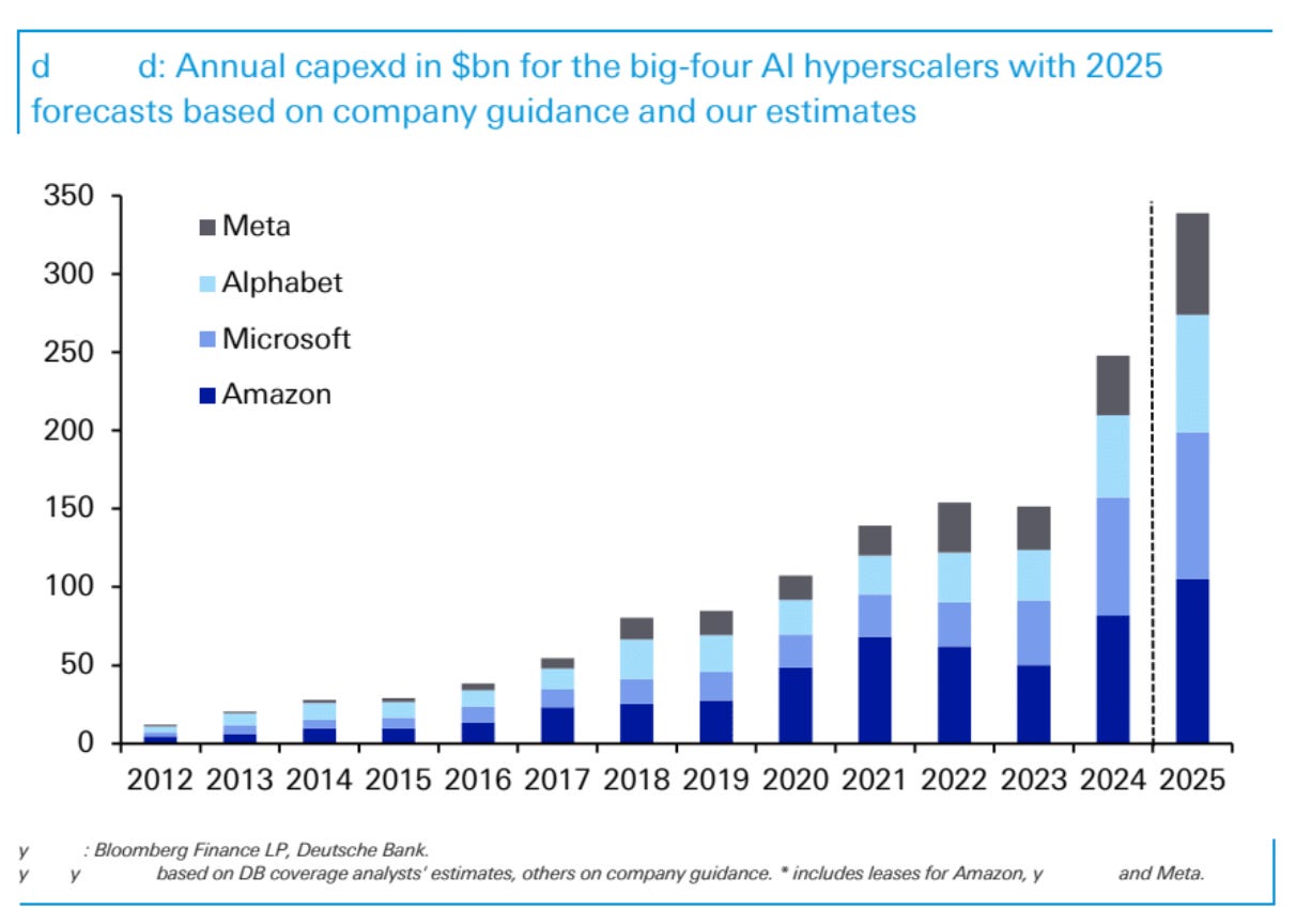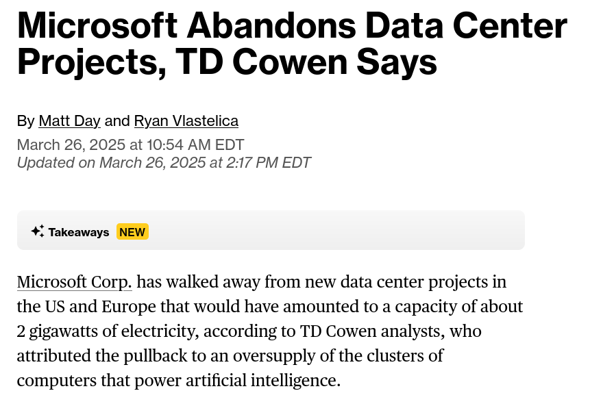 Firstly, Microsoft announced a cancellation of data center projects, and this comes of the heels of Alibaba’s warnings that there was already too much capex being spent on AI. This is definitely going to call into question all the large capital commitments by the various Mag 7 companies, and the sizable revenue projections from the likes of Nvidia.