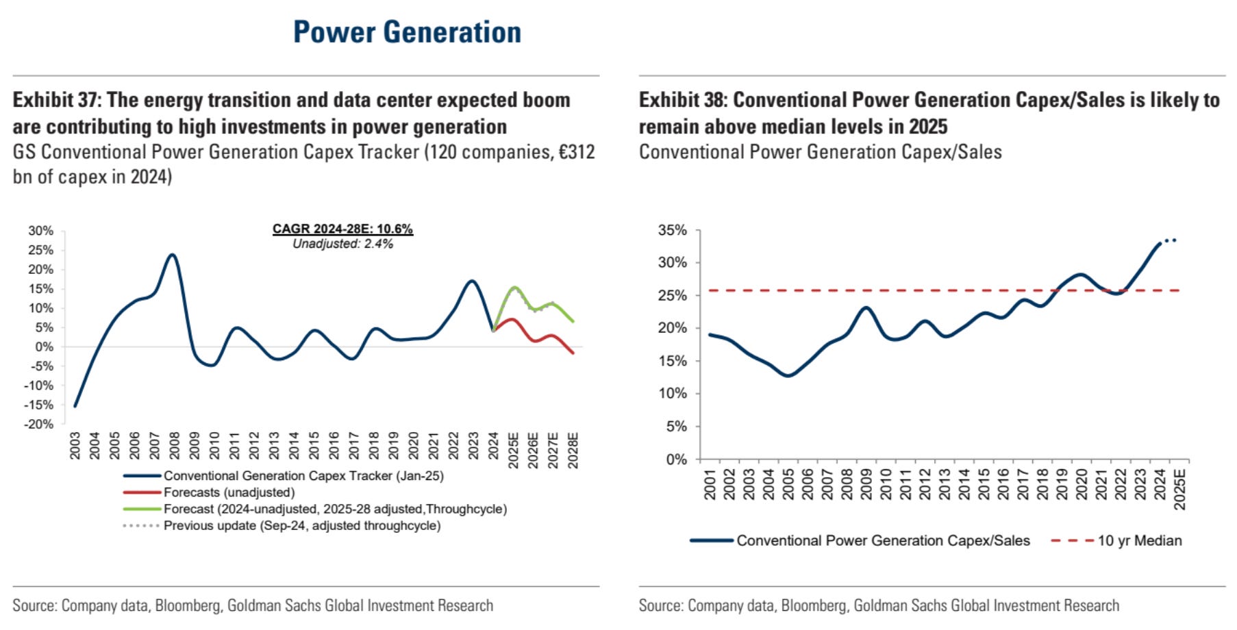 This chart is from a GS publication on Jan 7, 2025, talking about the capex increase in the power sector. It goes back to what we said in the beginning, all these companies were starting to allocate capex for data centers, and this was supported by the new administration. What will happen to this allocation if there is a pullback in data center build?