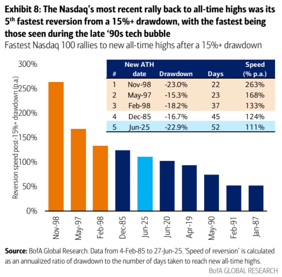 This chart is from a few days ago but, it’s still a good one. The recent rally in the Nasdaq is the 5th fastest reversion in history!
