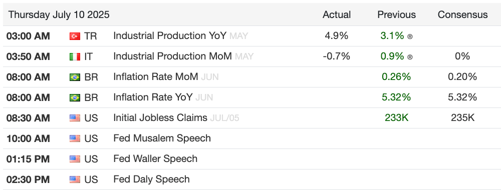 The FOMC meeting minutes gave us a mixed picture, with some saying they want to cut in July and some saying they ought to wait to see the impact of tariffs on inflation. This is now a big debate - do the tariffs cause inflation or do people just stop buying and we see deflation? I doubt that it will be the latter just yet. And something tells me that with this new round of tariff letters, we’re not likely to see a cut in July.