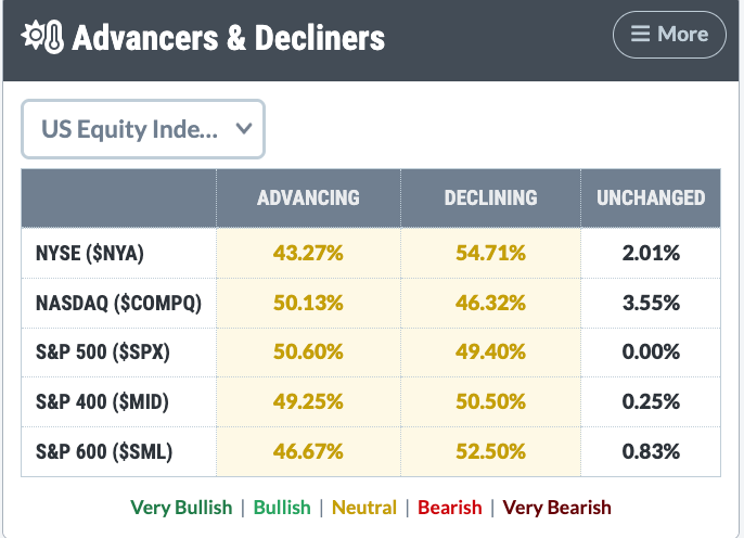 As for the market yesterday, despite the stark recovery, market breadth was tepid. Advancers & Decliners point to a more neutral stance.