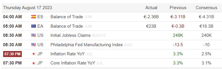 Initial claims, Philly Fed manufacturing and LEI all on the US economic calendar this morning.
