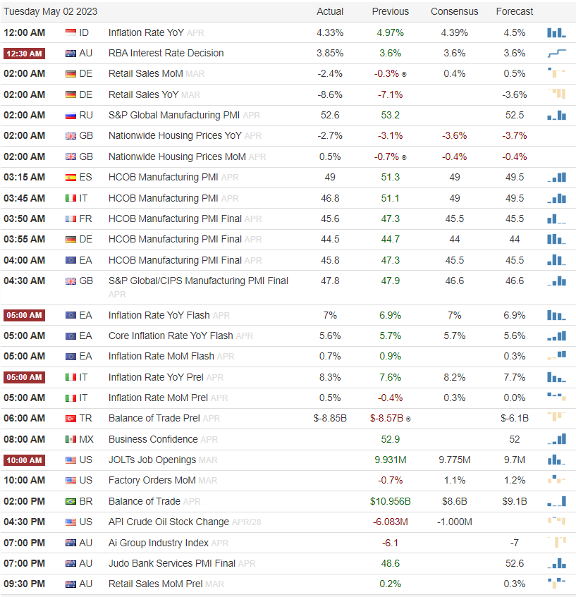 South Korea inflation eases, manufacturing PMI posts longest contraction in six years. Headline CPI rose 3.7% y/y in April, matching expectations, following 4.2% in the previous month. Given the challenging situation with production, it may not be surprising if the government decides to ease a little.