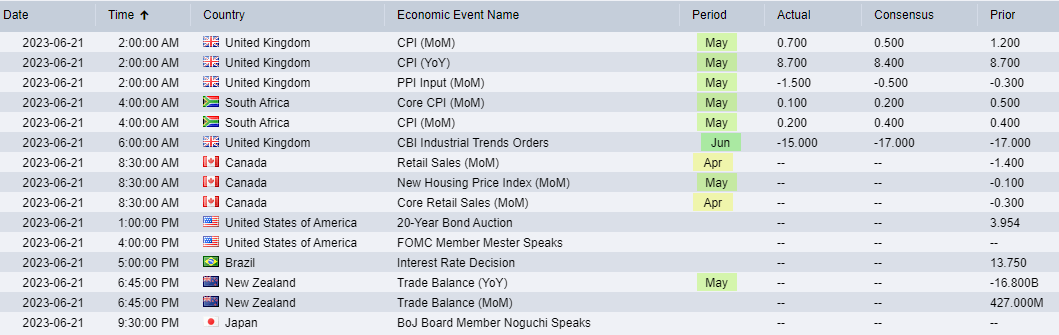 UK inflation data for May unexpectedly rose. Both headline and core measures came in higher than expected. Headline 8.7% y/y vs 8.4% expected and 8.7% prior. Core 7.1% y/y vs 6.8% expected and 6.8% prior.