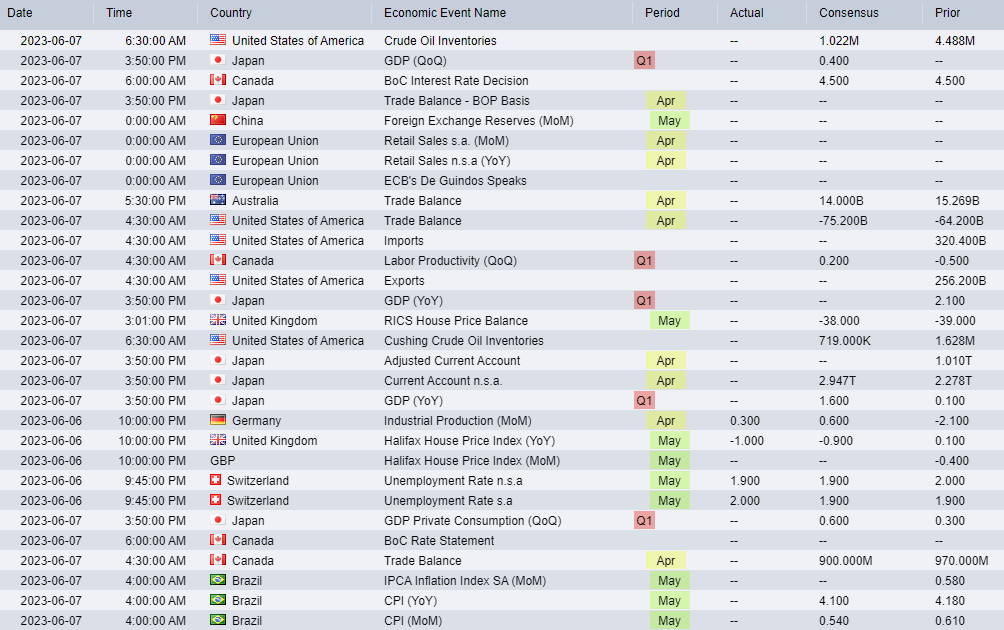 BoC rate meeting today; China's exports dropped -7.5% YoY; German Industrial Production below expectations; Australian GDP weakest since 2021