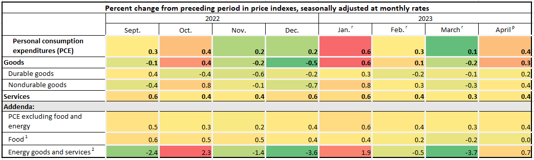 The core-PCE Price Index, which excludes food and energy, was up 0.4% (Briefing.com consensus 0.3%) and was up 4.7% versus 4.6% in March.