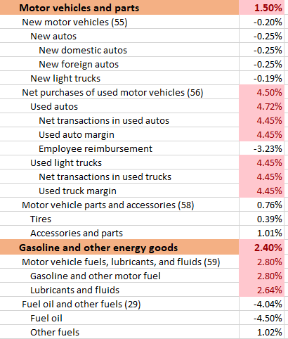 Motor Vehicles & Energy - We saw this in the CPI data as well.