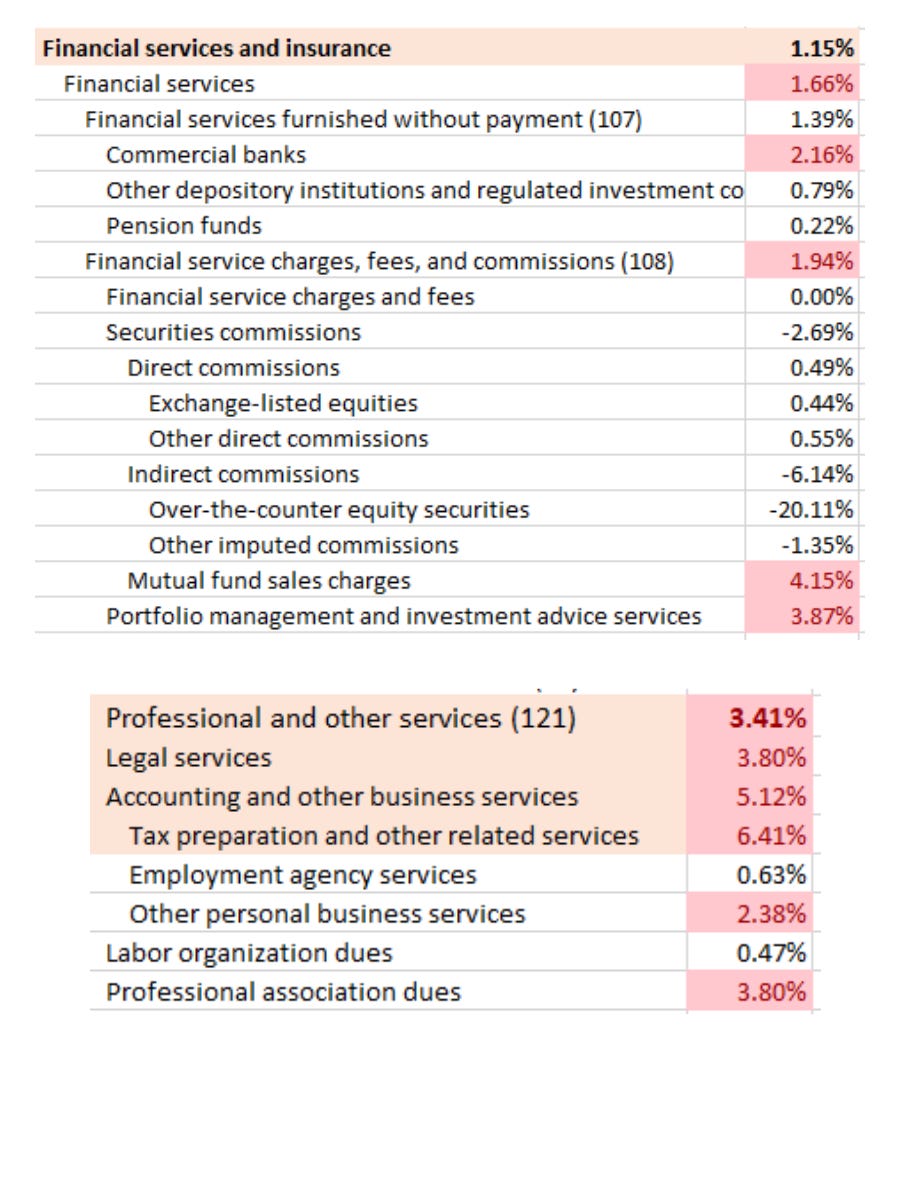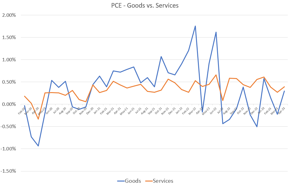 Zooming in however, we see that we got some welcome decreases in the Goods spending data for the last few months, albeit not very even changes.