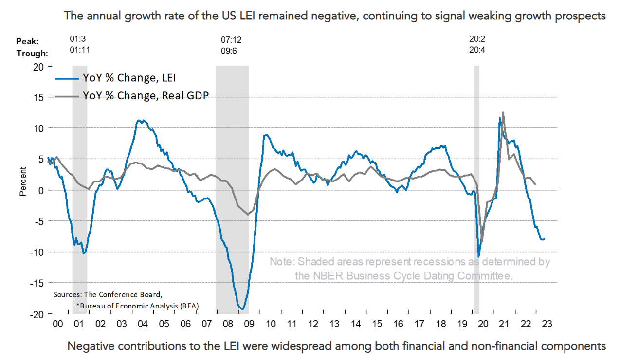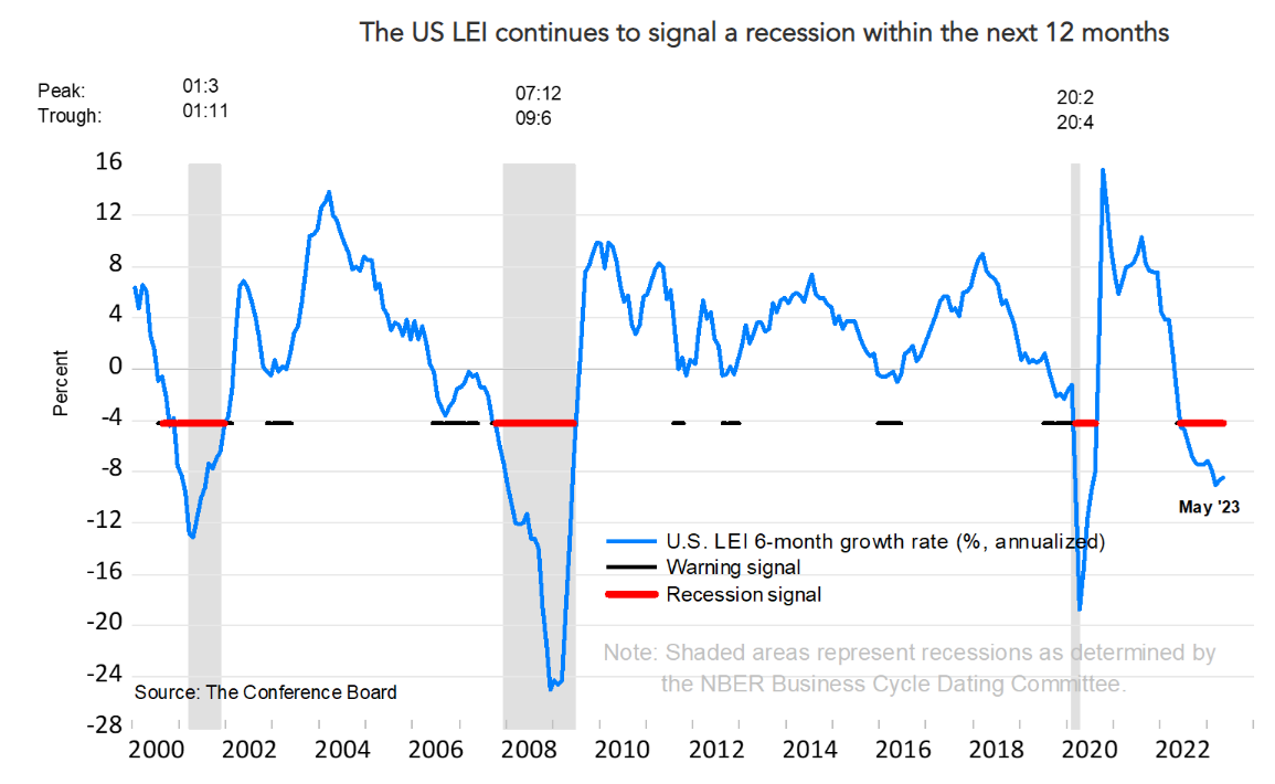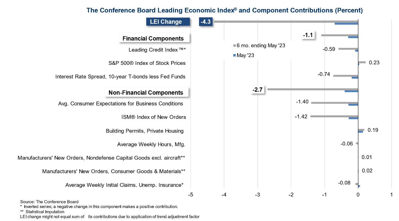 The Conference Board’s Leading Economic Index was released today for the month of May. Not surprisingly, the index declined again last month by -0.7% following a decline of -0.6% in April 2023. The LEI is now down -4.3% over the last 6 months.