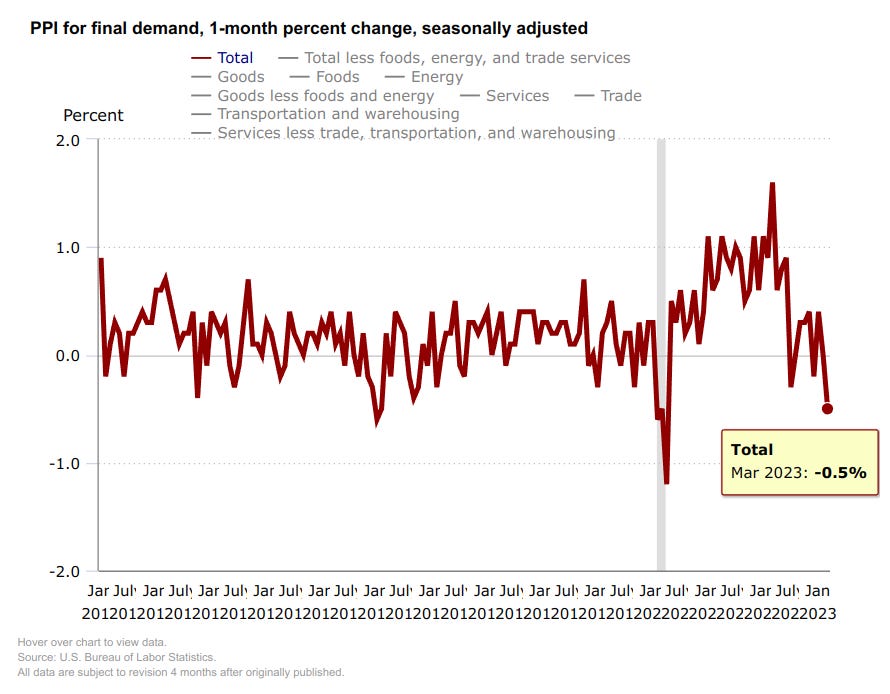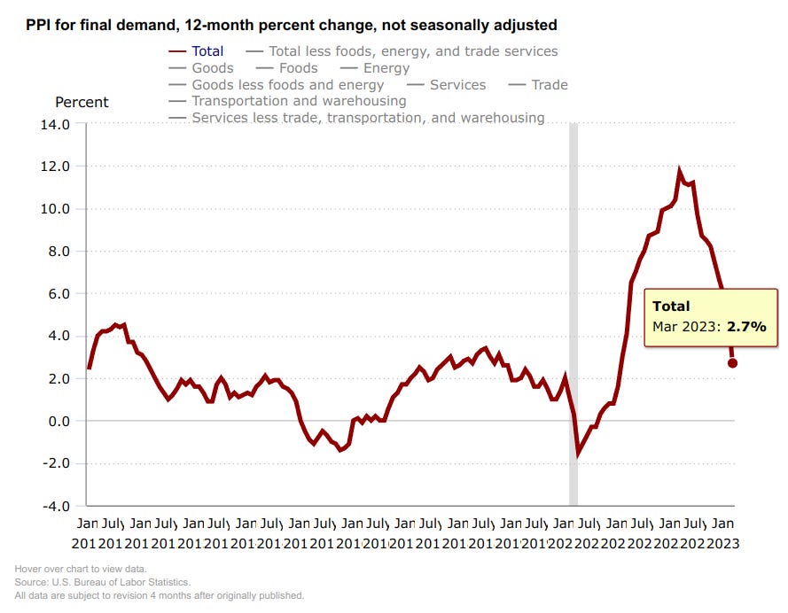 The decline in the PPI is expected to help reduce pass-through inflation, which occurs when businesses pass on increased input costs to consumers in the form of higher prices for goods and services. Lower pass-through inflation is generally good news for consumers, as it means they may face less upward pressure on the prices of goods and services they purchase. This generally takes about two months to play out from PPI to CPI.