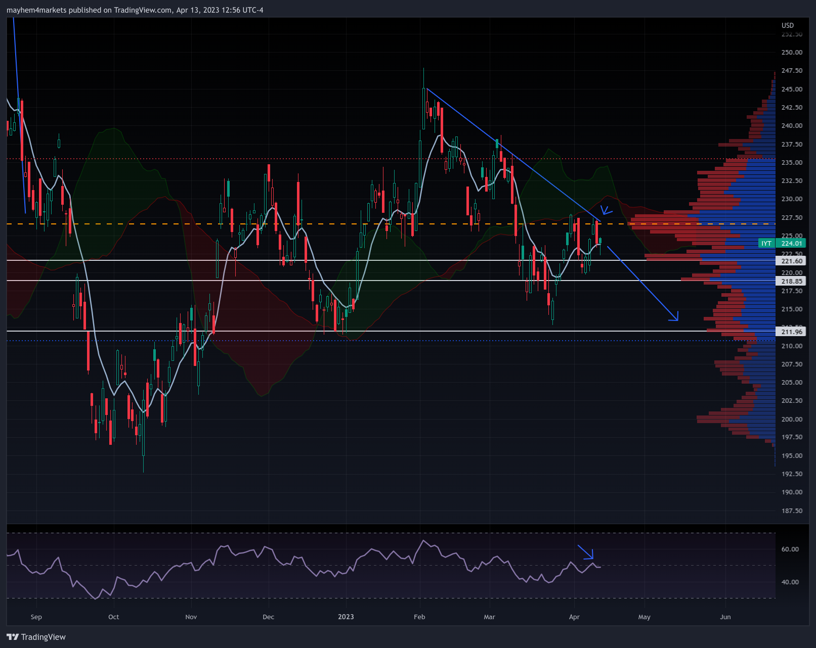 The transportation sector may weaken as a result of these developments, and that could lead to IYT being a decent fade here. With less need for transportation services we could see companies in this industry see a decline in revenue and earnings.