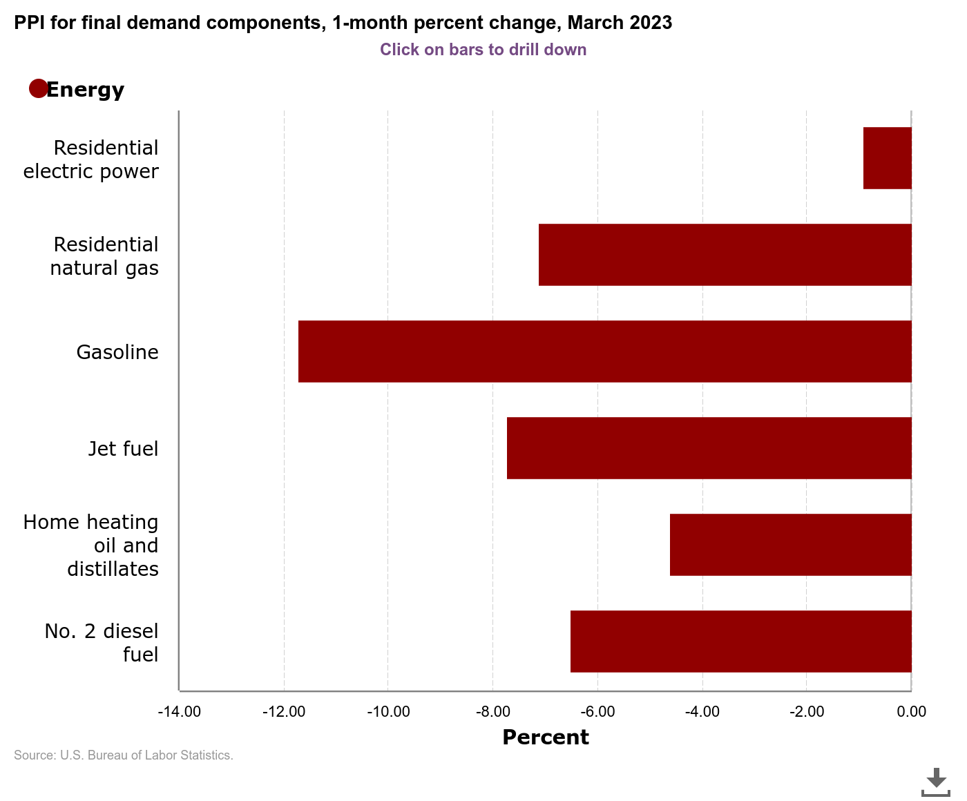 Energy as a component of goods final demand declined the most month-over-month, down 6.4%. The largest drop was in gasoline, which fell 11.7%. Followed by jet fuel, which fell 7.7% and third was residential natural gas, which fell 7.1%