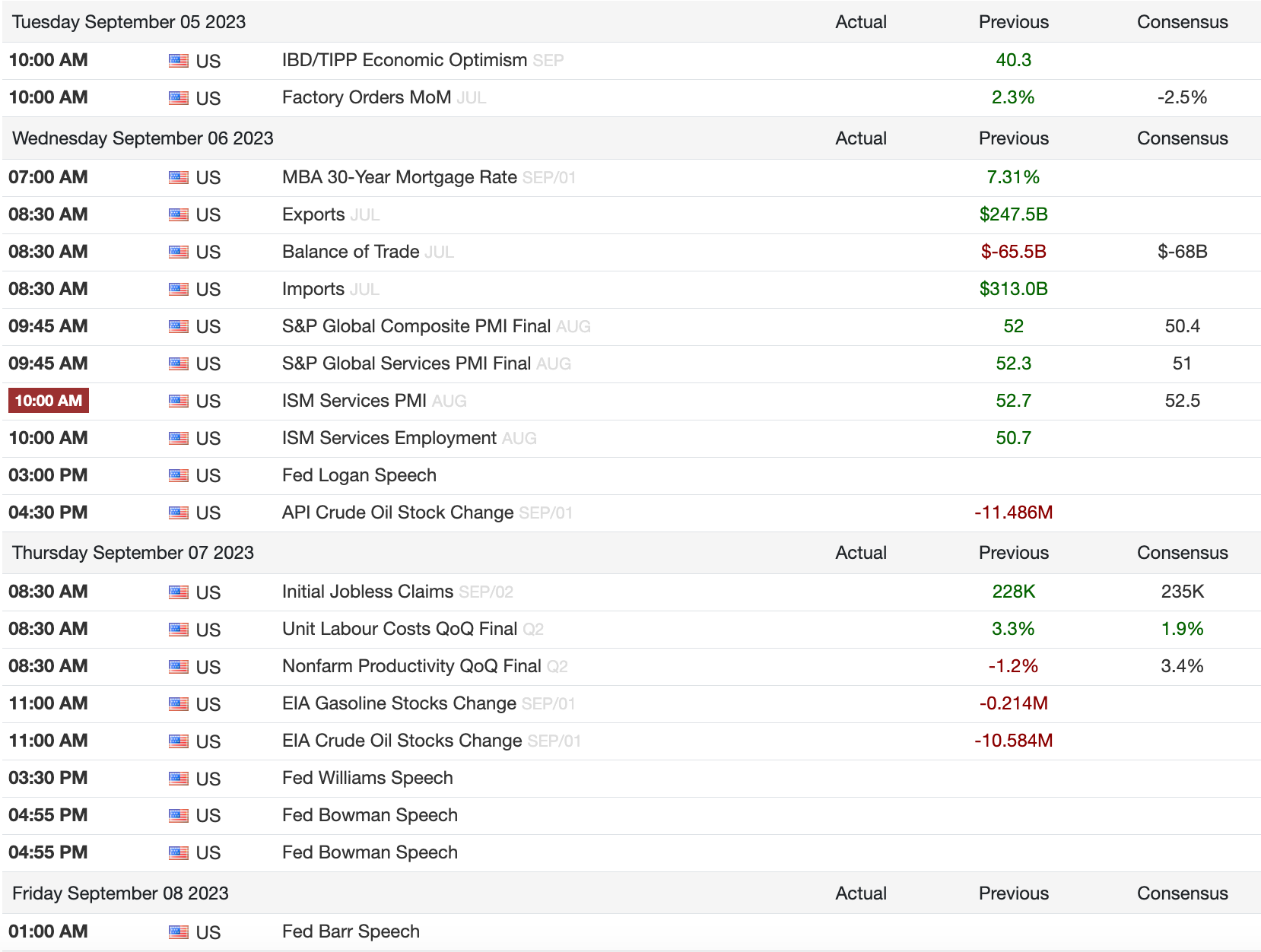 US Economic Calendar in Eastern Time (Source: Trading Economics)