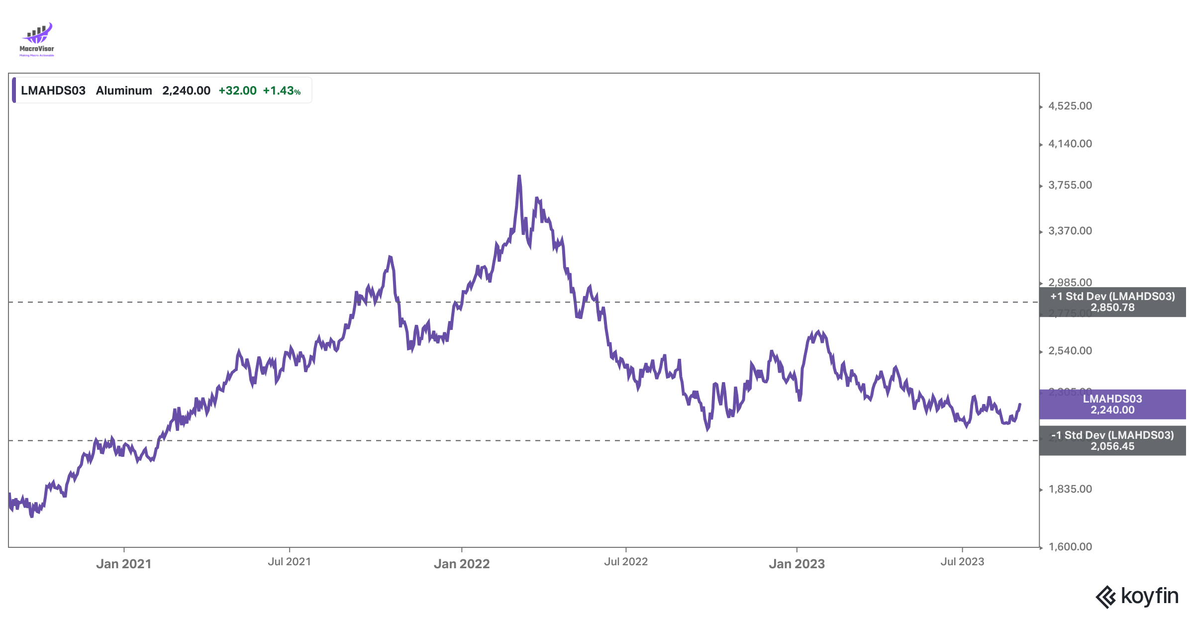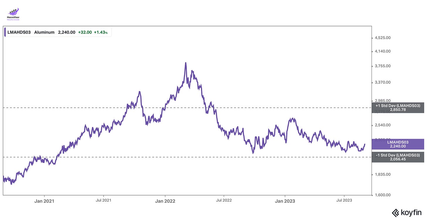 Aluminum prices have been on downtrend since the cycle peak last year with demand levels falling off. The drop in Chinese construction has been a major drag on prices. Add to that a slump in European and US Manufacturing.