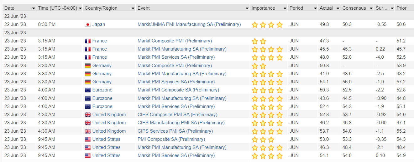 The S&P Global Flash US Manufacturing PMI posted 46.3 in June, down from 48.4 in May, signaling a sharper deterioration in operating conditions across the manufacturing sector. This decline in the health of the sector was the most severe in 2023 to date and stemmed from a marked reduction in new orders.